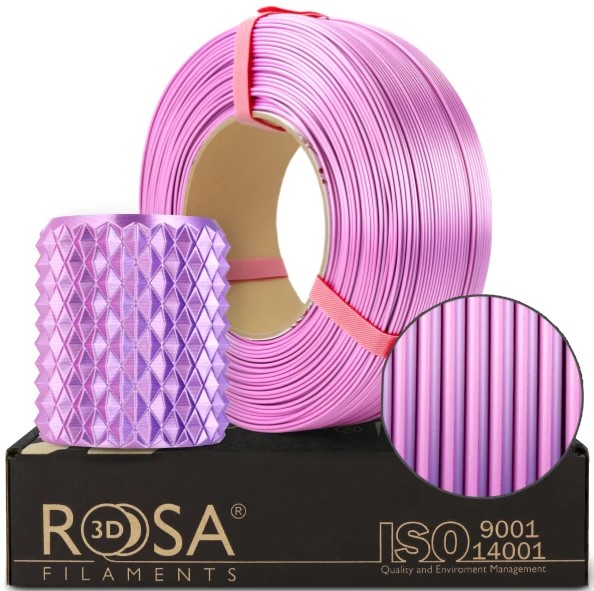 PLA Magic Silk is a 3D printing filament based on PLA-Silk. PLA Magic Silk Pink Dynamic combines two parallel colors in a single filament (pink and violet) as a result of the